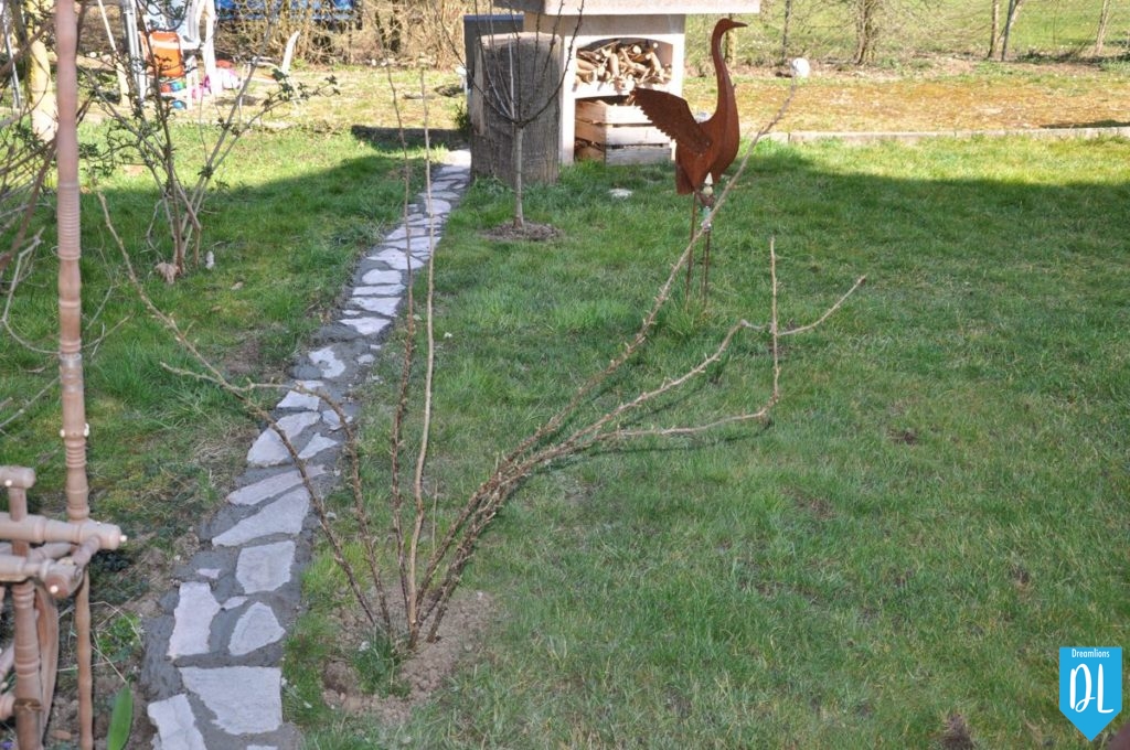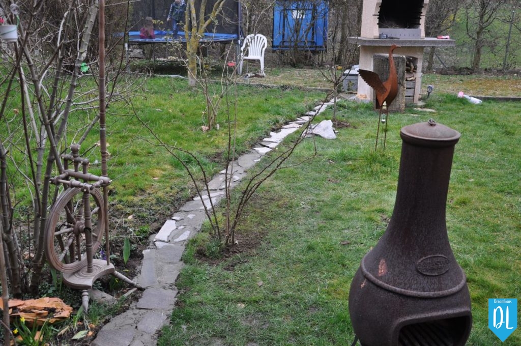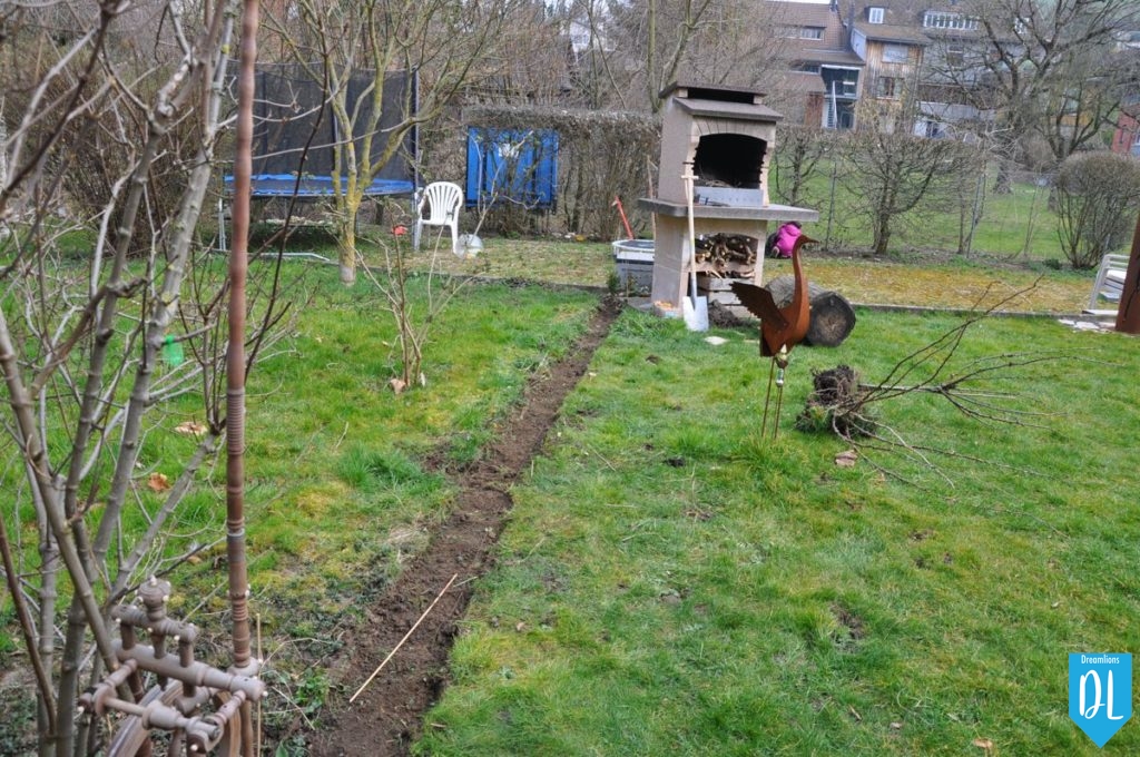 Auf der rechten Grenze zum Nachbargrundstück haben wir vergangenen Frühling ja bereits eine Rasenkante erstellt. Dort ist ein Zaun installiert und man kam kaum dazu vernünftig Rasen zu mähen. Mit der Rasenkante nun ist das absolut kein Problem mehr.