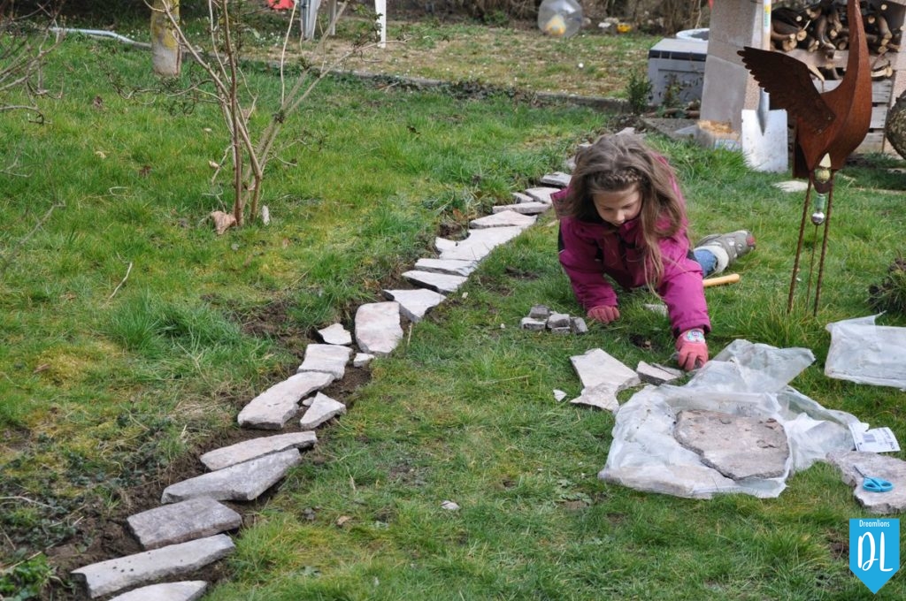 Einen hohen Zaun, etc. wollten wir nicht, aus diesem Grund haben wir uns nun entschlossen auf der linken Seite auch eine Rasenkante – analog auf der rechten Seite – zu erstellen. Jedenfalls haben Yael und ich dies dieses Wochenende erstellt.