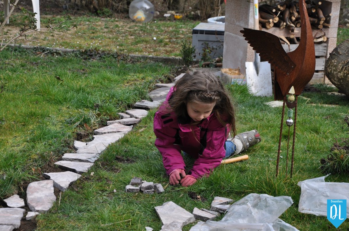 Einen hohen Zaun, etc. wollten wir nicht, aus diesem Grund haben wir uns nun entschlossen auf der linken Seite auch eine Rasenkante – analog auf der rechten Seite – zu erstellen. Jedenfalls haben Yael und ich dies dieses Wochenende erstellt.