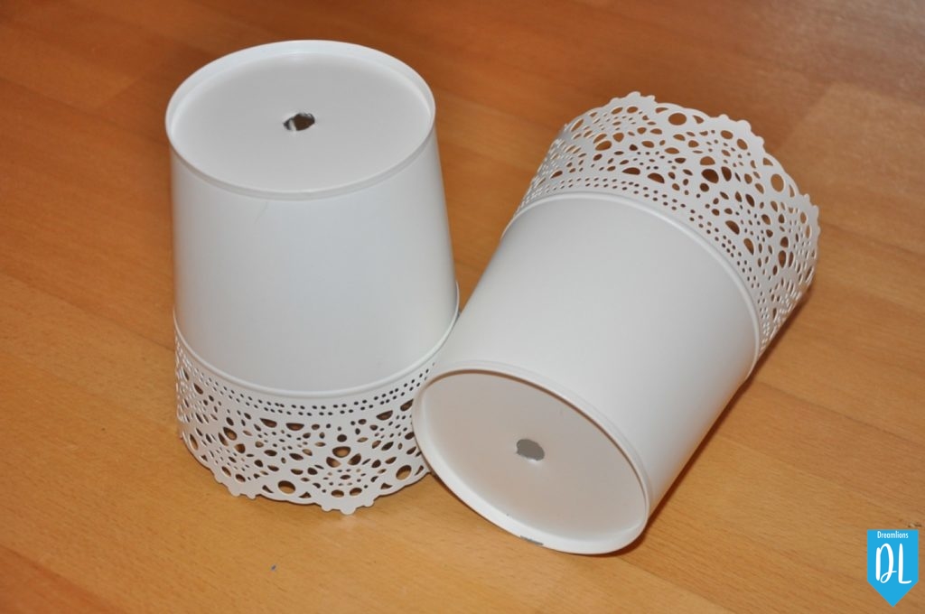 Doch was sollen es für Lampenschirme werden? Die Lösungen haben wir in Formen von Blumenübertöpfen im Ikea gefunden. Lampenfassungen sowie das benötigte Kabel habe ich vorab bei mir im Geschäft bestellt.