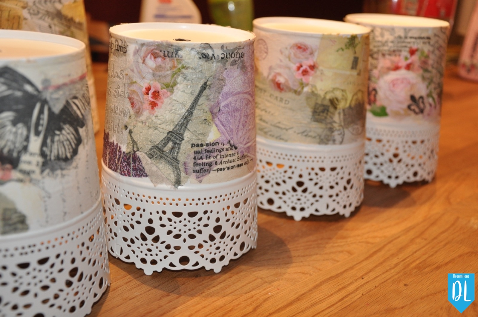 Die Übertöpfe hat Natascha dann mittels Serviettentechnik mit Servietten im Vintage Stil dekoriert.