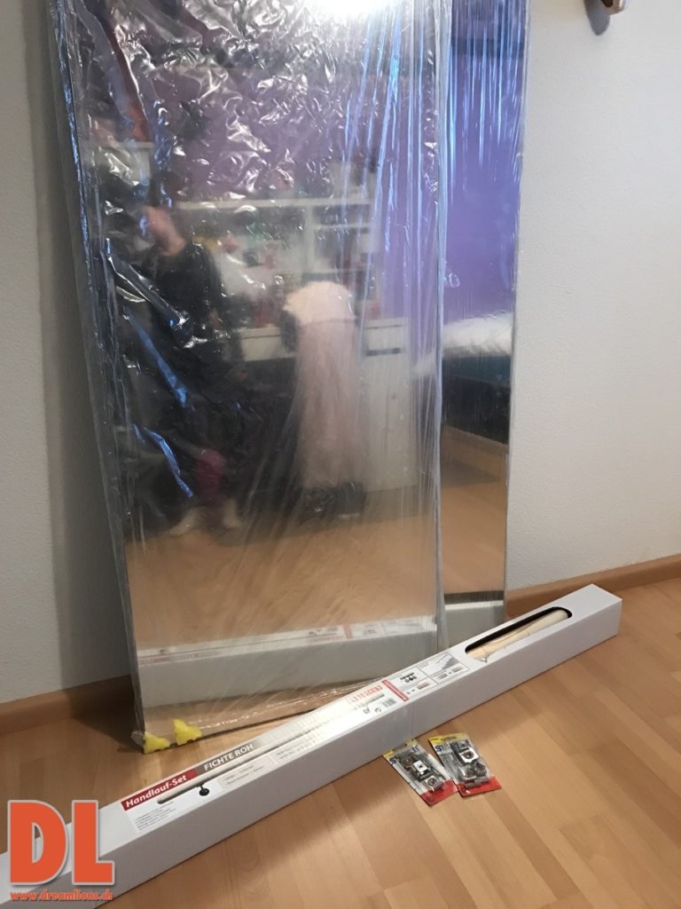 Auf jeder Seite musste ein Loch gebohrt werden, danach die Schraube reindrehen und den Halter montieren. Dies natürlich auf jeder Seite. Am Ende noch die Stange auf die Halter schrauben und schon ist die Ballettstange inkl. schönem grossen Spiegel fertig montiert.
