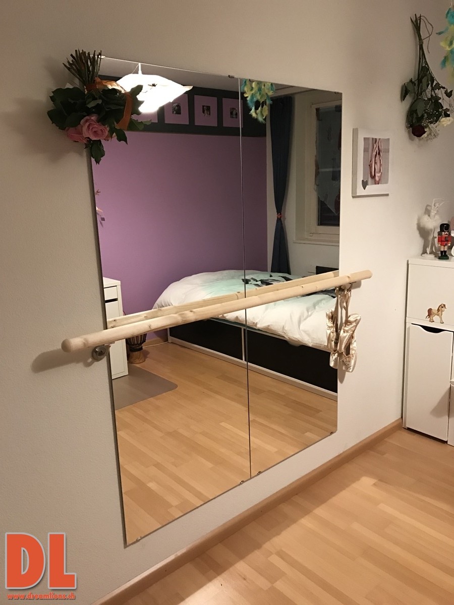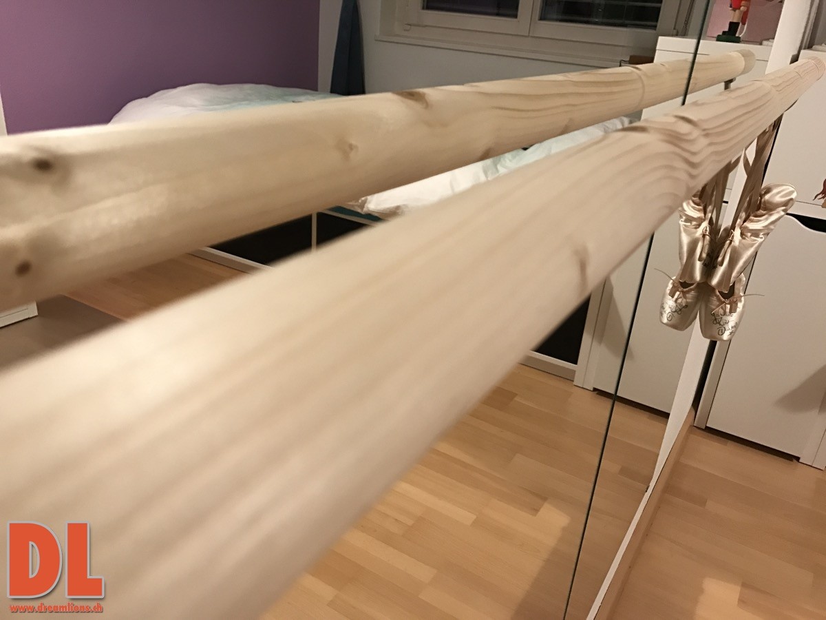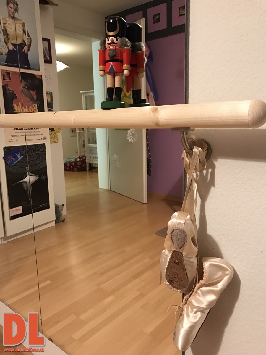 Unserer kleinen Ballerina erfüllten wir vor kurzem ein kleinen Wunsch: Eine eigene Ballettstange mit grossem Spiegel im Kinderzimmer