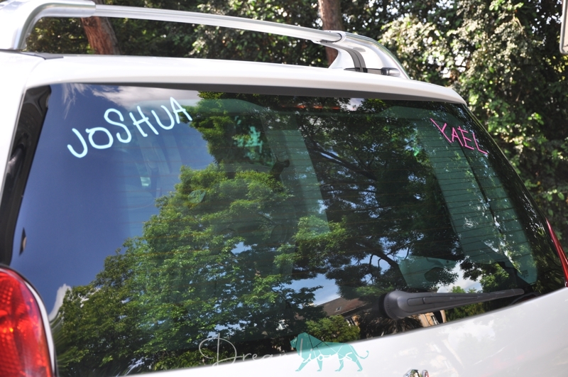 Natürlich dürfen auch die Kinder Sticker auf dem Auto nicht fehlen. Dafür war Yael zuständig und verantwortlich. Sie schrieb die Namen auf dem iPad, ich vektorisierte diese und habe sie danach geplottet. Danach konnte Yael die Sticker entgittern, mit Tape versehen und anschliessend auch gleich auf dem Auto montieren. Herzlichen Dank Yael, das hast Du super gemacht!