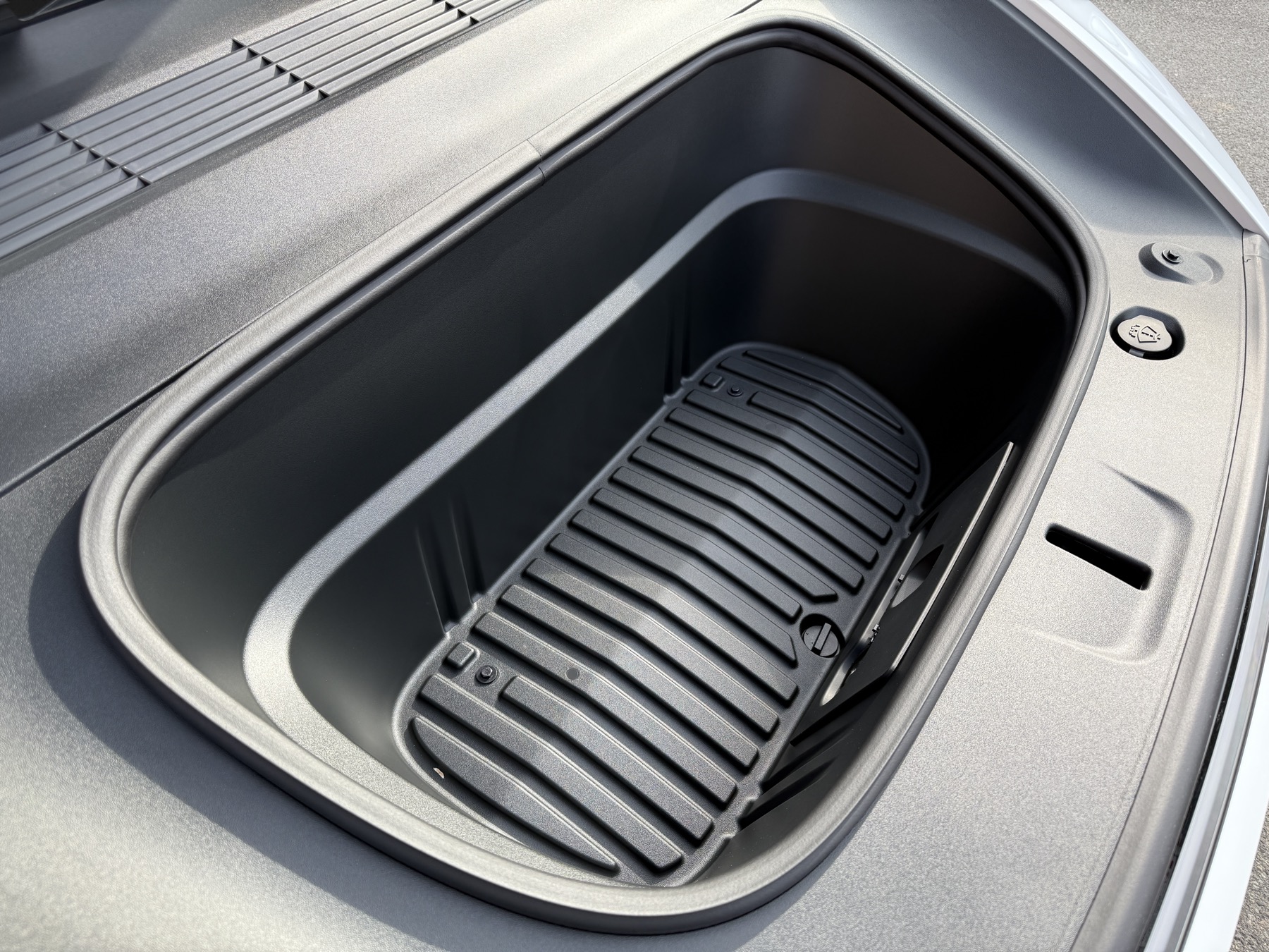Standardmässig ist der vordere Kofferraum des neuen Tesla Model Y (2026) mit einer ganz einfachen LED Leuchte ausgestattet. Gerade so, dass man was im Frunk sieht.