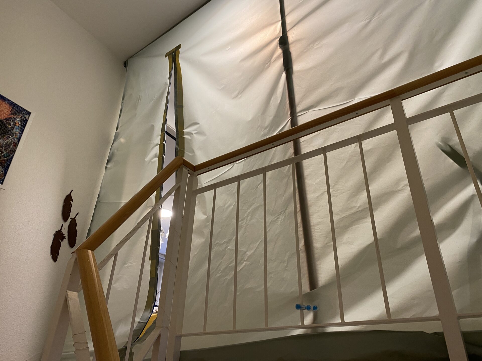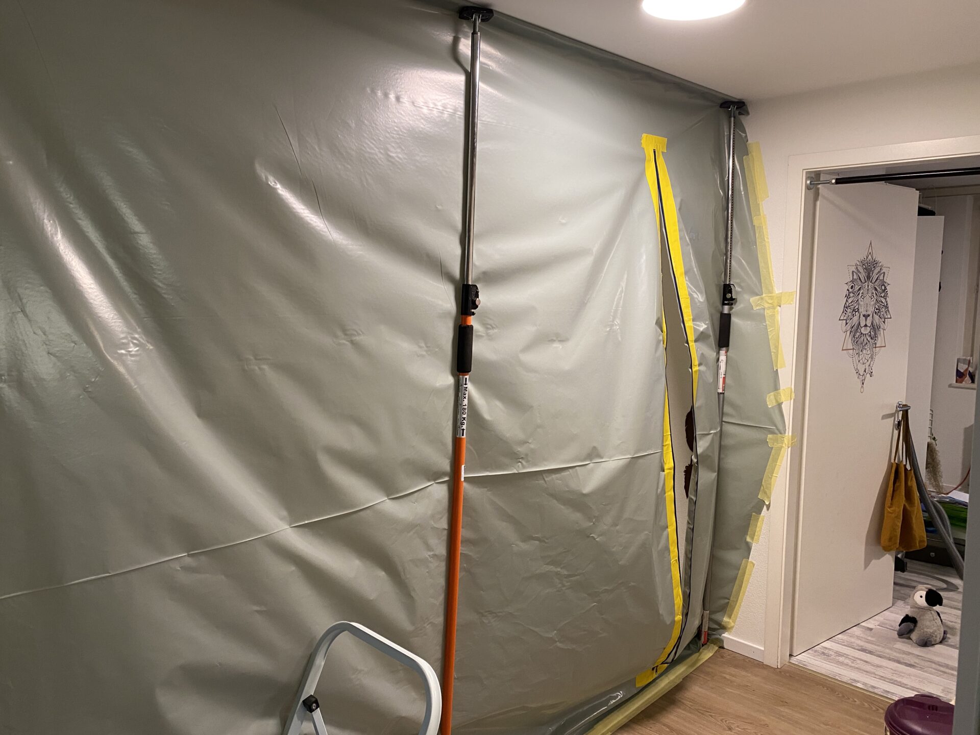 Die Firma Willy Herb AG hat heute mit dem Herausreissen unseres Parkettbodens begonnen. Natürlich haben sie zuvor diverse Staubwände montiert, damit unsere Wohnung nicht komplett eingestaubt wird.